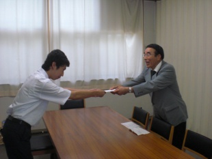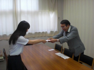 市川会長が、平成28年7月18日本校校長室で全国大会出場する生徒に激励をした。