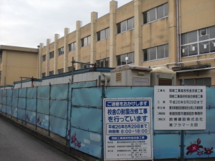 母校の今! 2015年06月16日 6月~7月にかけて、情報科棟の東の土手に紫陽花が見頃です。 毎年5月には、本館前の中庭の躑躅が見頃です。 平成26年度入学式 全日制、320名の新しい岡工生の誕生です。 午後からは、定時制の入学式があり、機械科に40名が入学しました。 母校の桜が見ごろです。 現在、機械科南棟と機械デザイン(旧、紡織、繊維、テキスタルデザイン)科棟の耐震工事が始まりました。 平成26年2月14日に雪が降りました。